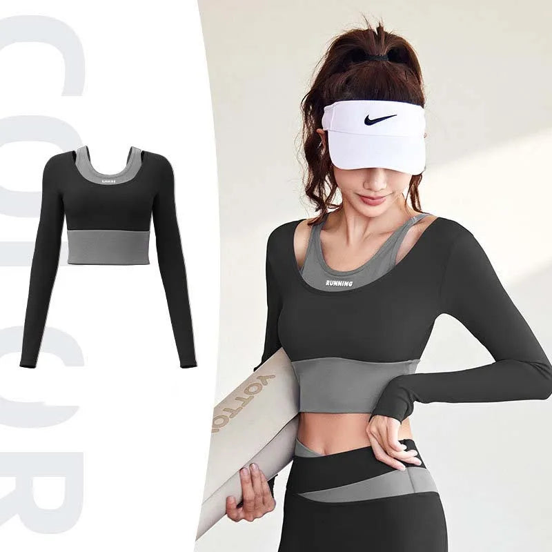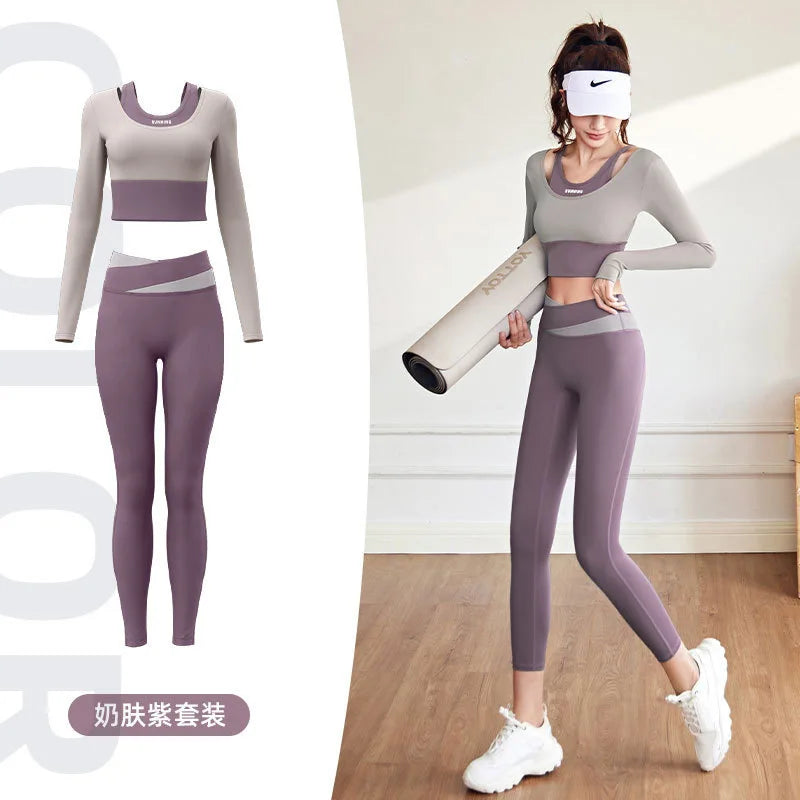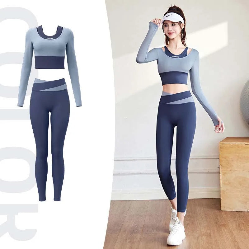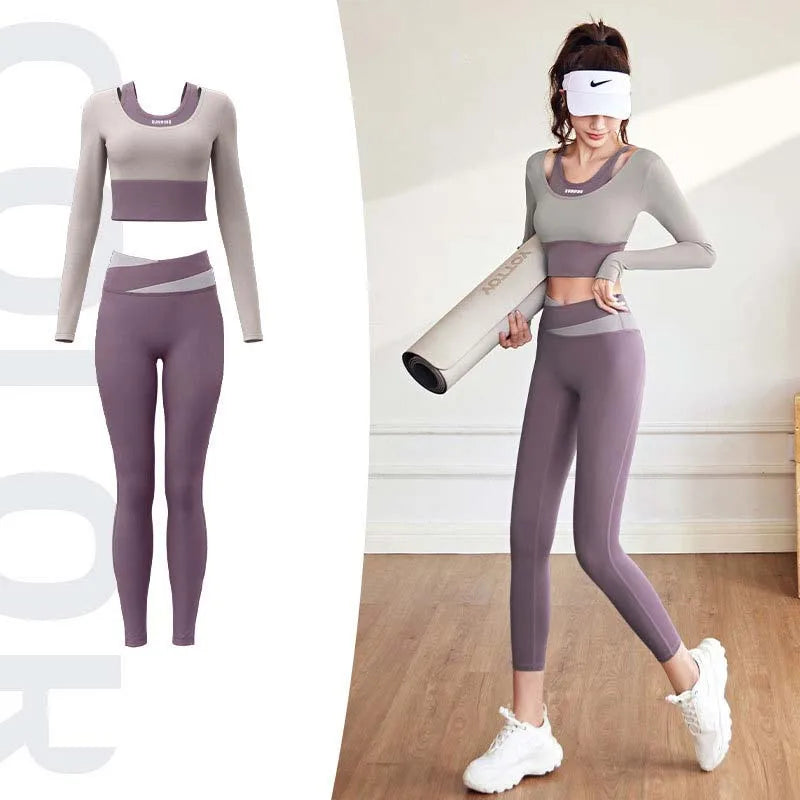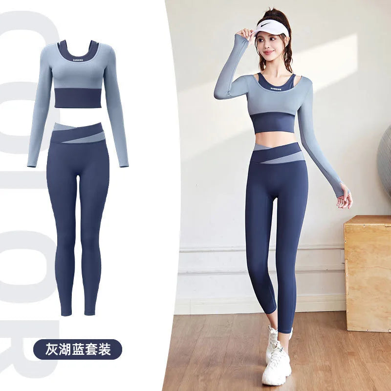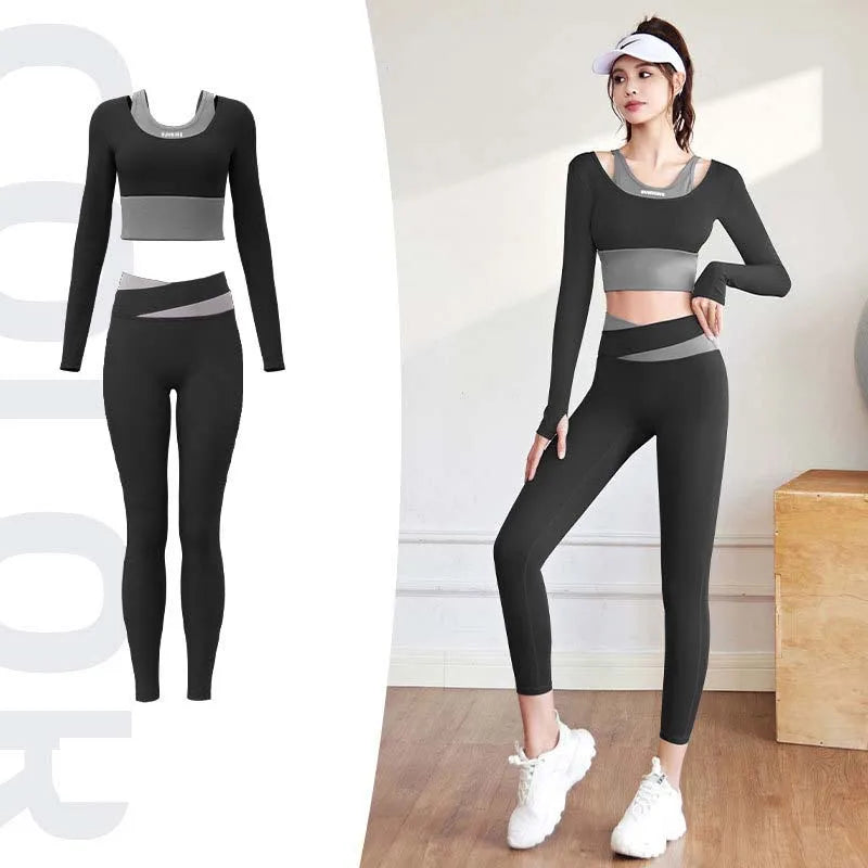 2pcs Women's Yoga Set Long Sleeve Gym Crop Top High Waist Leggings Fitness Sports Wear Quick Dry Breathable Pilates Yoga Suits